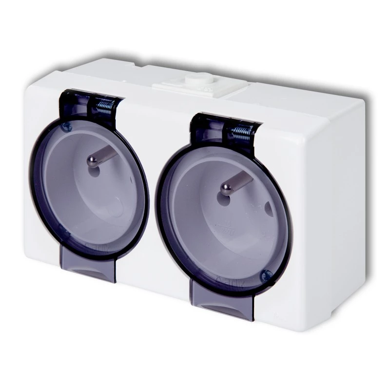 HYDRO Gniazdo hermetyczne podwójne z/u IP44 z klapką dymną białe 121436