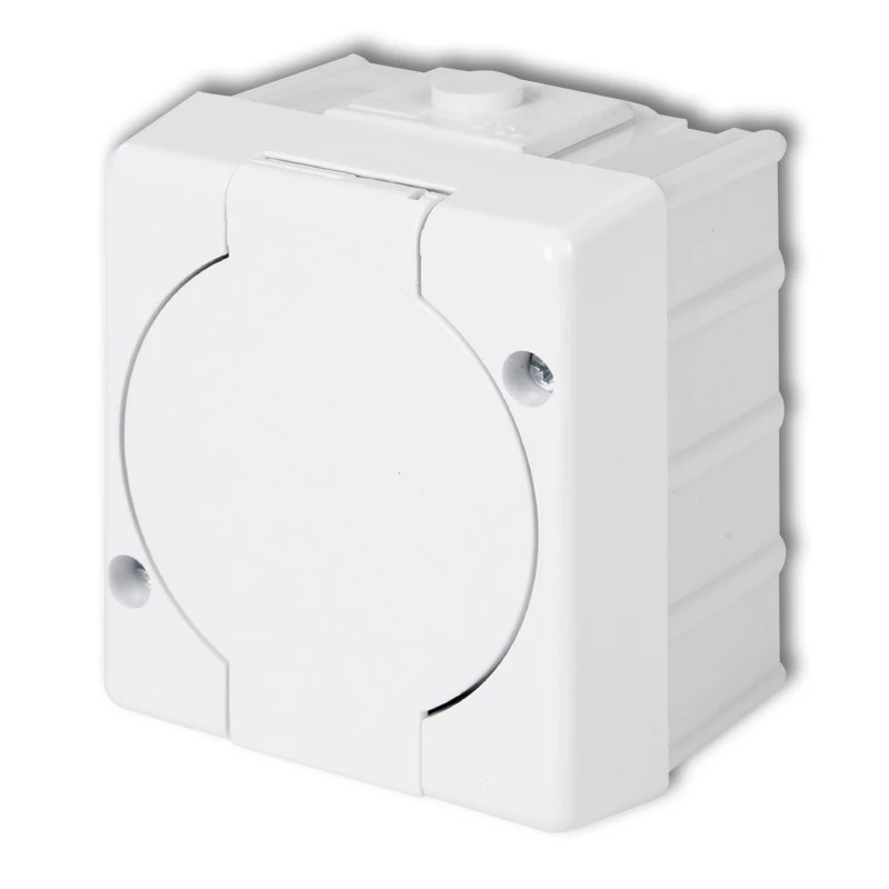 HERMES BIAŁY GNIAZDO NT 1X Z/U Z KLAPKĄ IP44 ZACISKI ŚRUBOWE 16A 250V