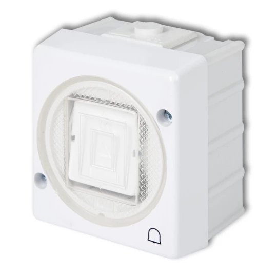 HERMES Łącznik dzwonek mechanizm z pełną obudową biały IP44 przycisk 1x ŁNT-1D 0337-02