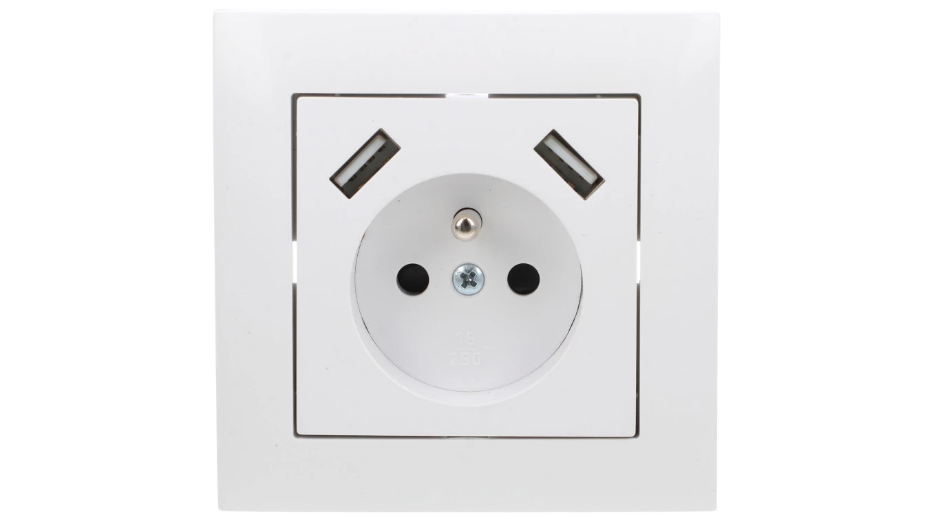 SENTIA BIAŁY GNIAZDO 2X USB GPT 2P+Z ZASILAJĄCE Z/R ZACISKI ŚRUBOWE 16A 250V