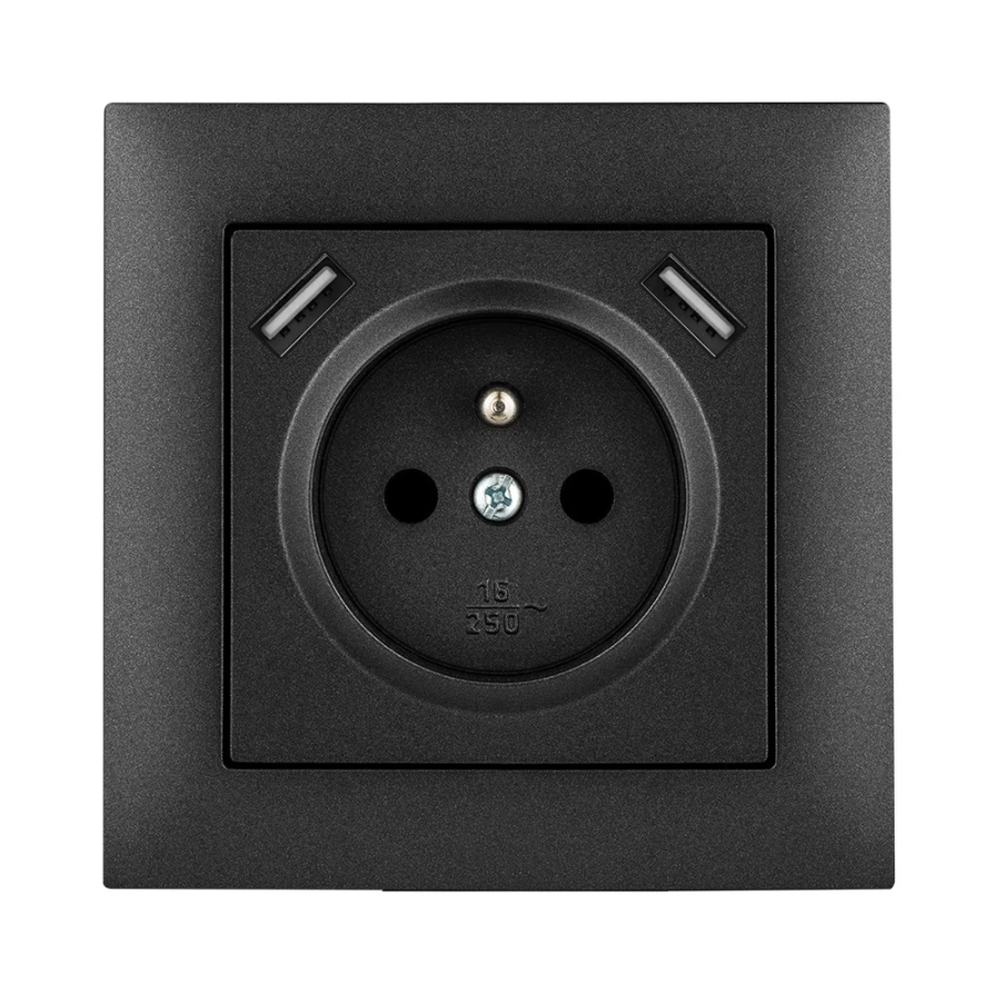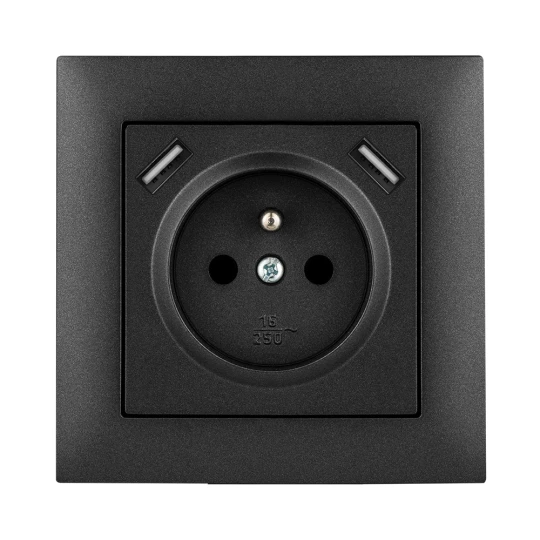 SENTIA CZARNY METALIZOWANY GNIAZDO 2X USB 2P+Z ZASILAJĄCE Z/R ZACISKI ŚRUBOWE 16A 250V