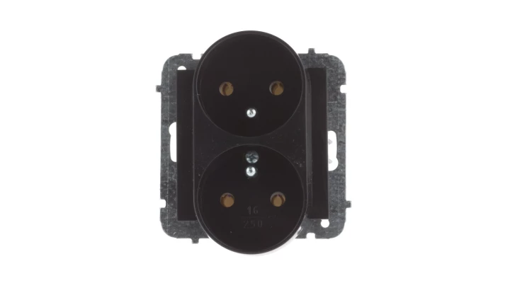 SONATA MODUŁ CZARNY METALIK GNIAZDO 2X Z/U ZACISKI ŚRUBOWE 16A 250V