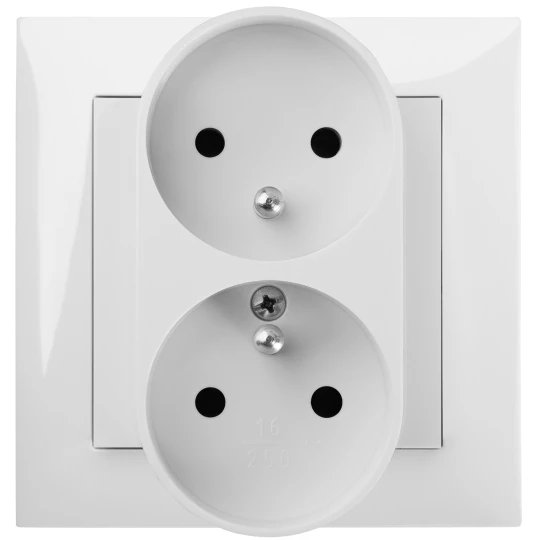 AS BIAŁY GNIAZDO 2X Z/U Z PRZESŁONAMI ZACISKI ŚRUBOWE 16A 250V