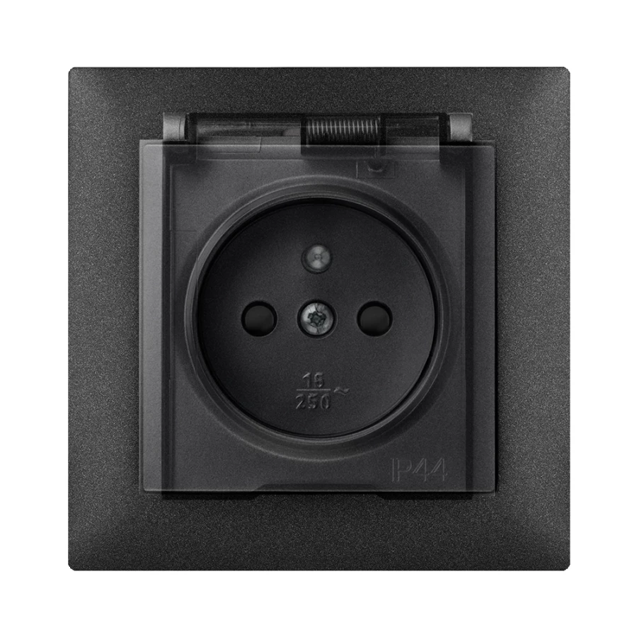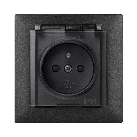 SENTIA MODUŁ CZARNY METALIZOWANY/ DYMNY GNIAZDO 2X Z/U Z KLAPKĄ IP44 ZACISKI ŚRUBOWE 16A 230V