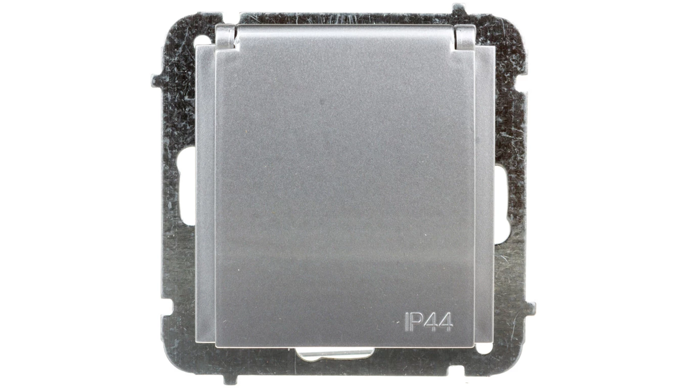 SENTIA MODUŁ SREBRNY POŁYSK GNIAZDO 1X Z/U Z KLAPKĄ IP44 Z PRZESŁONAMI