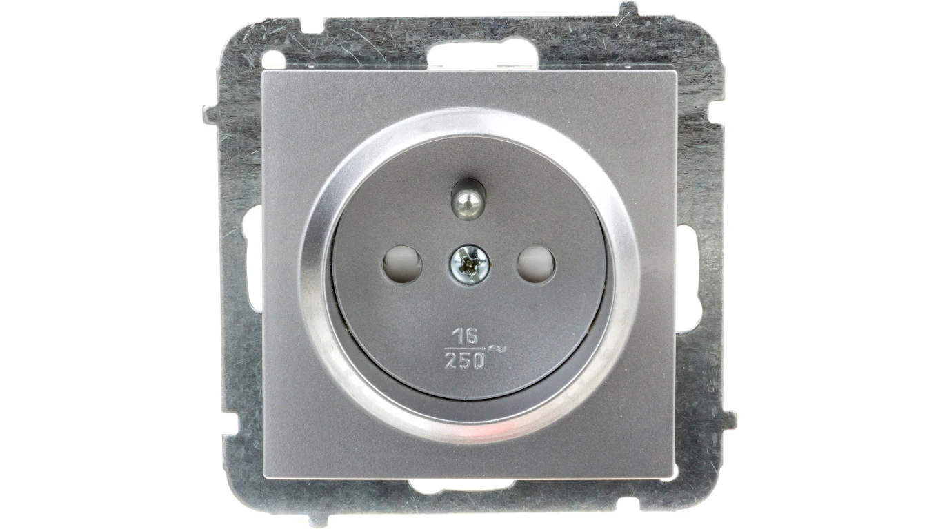 SENTIA MODUŁ SREBRNY POŁYSK GNIAZDO 1X Z/U Z PRZESŁONAMI ZACISKI ŚRUBOWE 16A 230V