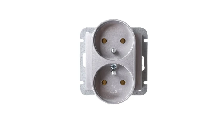 SENTIA MODUŁ SREBRNY POŁYSK GNIAZDO 2X Z/U ZACISKI ŚRUBOWE 16A 230V
