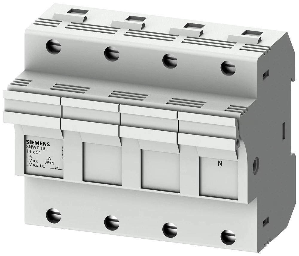 SENTRON, UCHWYT DO BEZPIECZNIKÓW CYLINDRYCZNYCH, 14X51 MM, 3P+N, IN: 50 A, UN AC: 690 V, ...