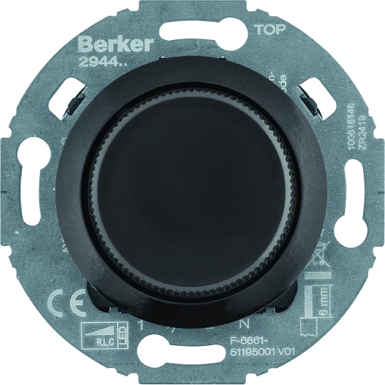 Serie 1930/Glas Ściemniacz obrotowy komfort z płytką czołową, czarny, obciążenie R/L/C 20-420 W, LED 3-100 W 294411