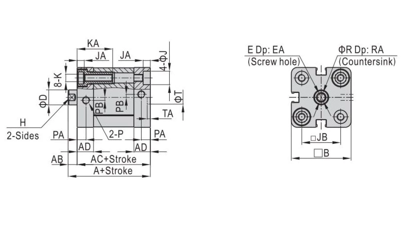 Siłownik Pneumatyczny kompaktowy z jednostronnym tłoczyskiem ISO21287. Średnica tłoka 16mm skok 25mm D16x25, FNSKI016.0025