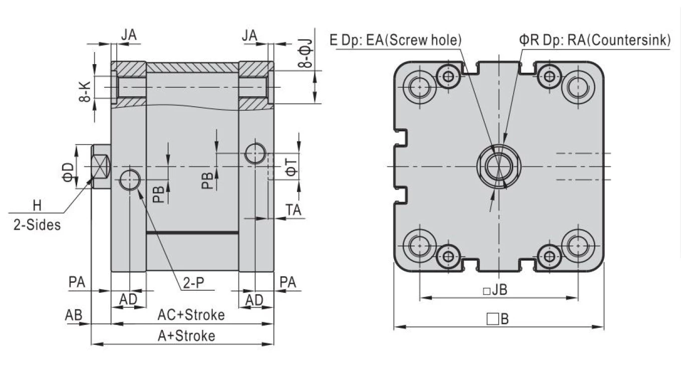Siłownik Pneumatyczny kompaktowy z jednostronnym tłoczyskiem ISO21287. Średnica tłoka 80mm skok 50mm D80x50, FNSKI080.0050
