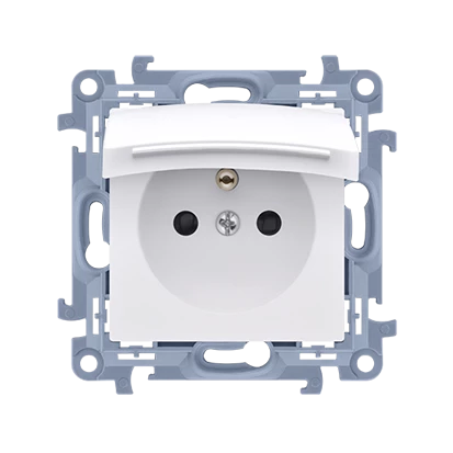 SIMON 10 MODUŁ BIAŁY GNIAZDO 1X Z/U Z KLAPKĄ BIAŁĄ IP44 ZACISKI SPRĘŻYNOWE 16A 250V