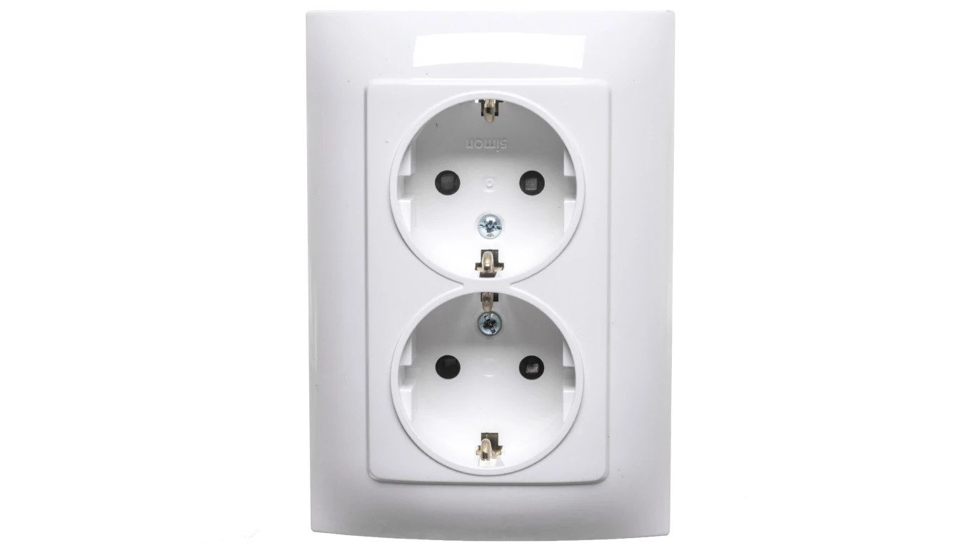 SIMON 10 MODUŁ BIAŁY GNIAZDO 2X SCHUKO Z PRZESŁONAMI ZACISKI ŚRUBOWE 16A 250V