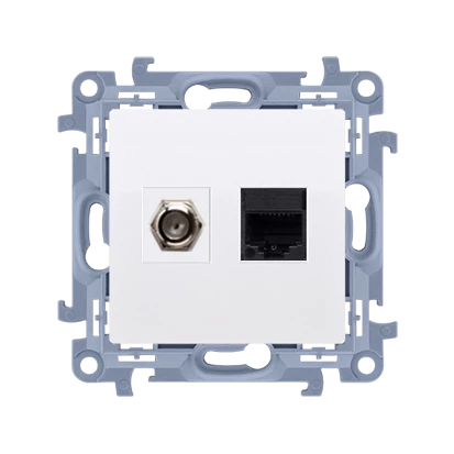 Gniazdo antenowe typu "F" + RJ45 kat.5e (moduł), biały Simon10 o numerze katalogowym CASFRJ455.01/11 w kategorii Gniazda teleinformacyjne, multimedialne, Łączniki i gniazda instalacyjne. Produkt wyprodukowany przez markę KONTAKT-SIMON, seria SIMON 10.