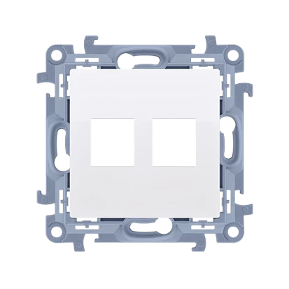Pokrywa gniazd teleinformatycznych na Keystone płaska podwójna (moduł), biały Simon10 o numerze katalogowym CKP2.01/11 w kategorii Plakietki, Ramki, klawisze, plakietki. Produkt wyprodukowany przez markę KONTAKT-SIMON, seria SIMON 10.