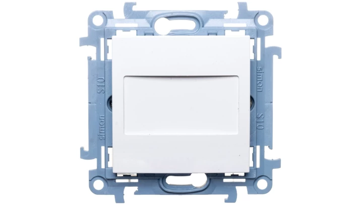 Zaślepka ramki (moduł). Mocowanie za pomocą łapek lub wkrętów, biały Simon10 o numerze katalogowym CPS.01/11 w kategorii Zaślepki, maskownice, Ramki, klawisze, plakietki. Produkt wyprodukowany przez markę KONTAKT-SIMON, seria SIMON 10.