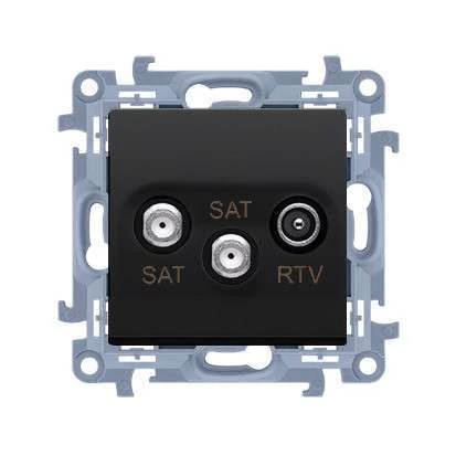 Gniazdo antenowe satelitarne podwójne SAT-SAT-RTV (moduł), 1x wejście: 5 MHz-2,4 GHz, czarny mat, SIMON10 o numerze katalogowym CASK2.01/49 w kategorii Gniazda teleinformacyjne, multimedialne, Łączniki i gniazda instalacyjne. Produkt wyprodukowany przez markę KONTAKT-SIMON, seria SIMON 10.
