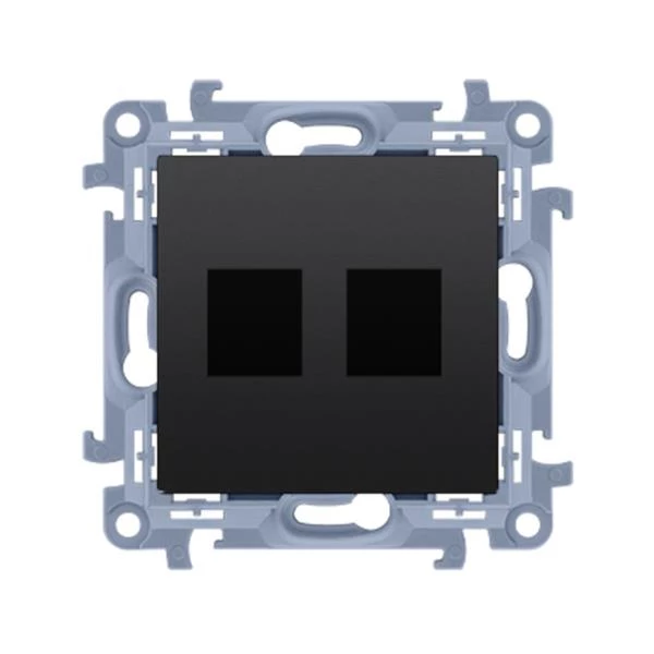 Pokrywa gniazd teleinformatycznych na Keystone płaska podwójna (moduł), czarny mat, SIMON10 o numerze katalogowym CKP2.01/49 w kategorii Plakietki, Ramki, klawisze, plakietki. Produkt wyprodukowany przez markę KONTAKT-SIMON, seria SIMON 10.