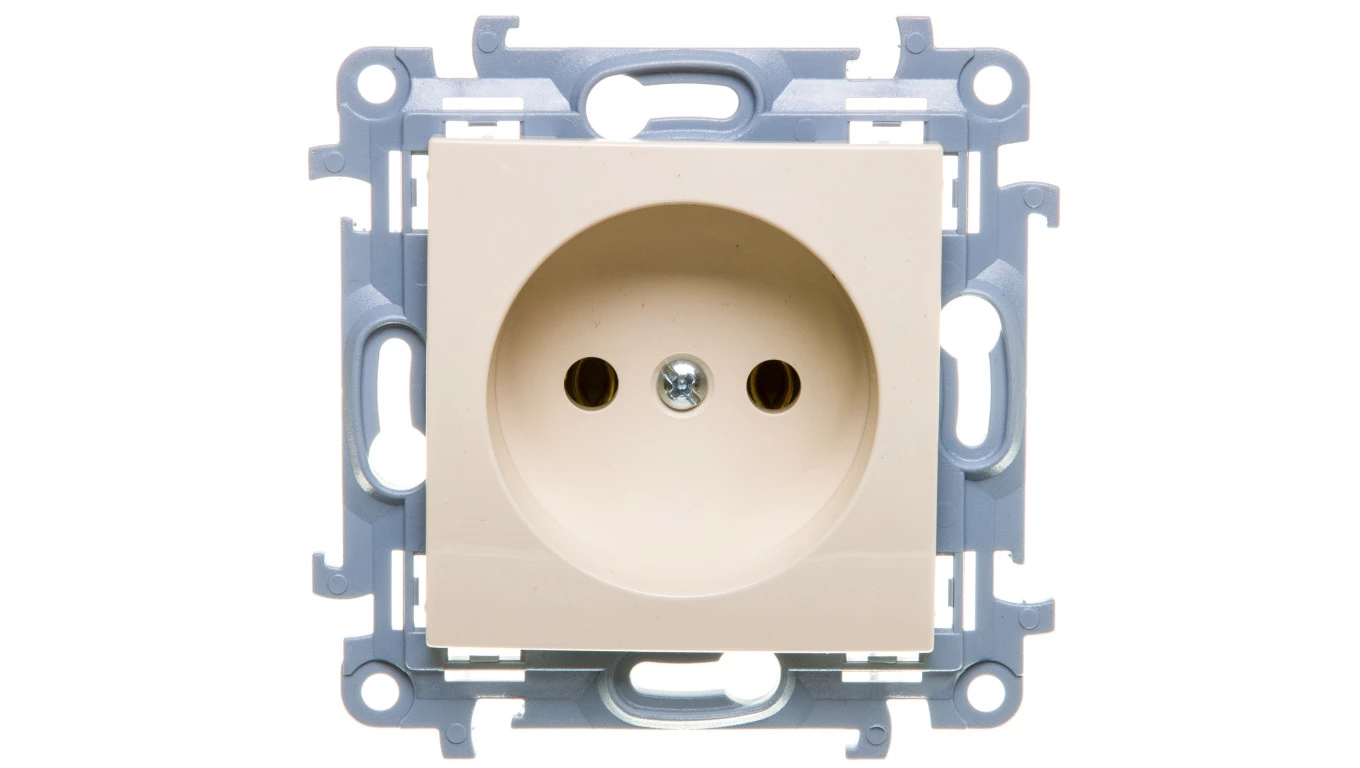 Gniazdo wtyczkowe bez uziemieniem pojedyncze (moduł) 16 A, 250 V~, zaciski śrubowe, beż Simon10 o numerze katalogowym CG1.01/41 w kategorii Gniazda podtynkowe, Gniazda instalacyjne. Produkt wyprodukowany przez markę KONTAKT-SIMON, seria SIMON 10.