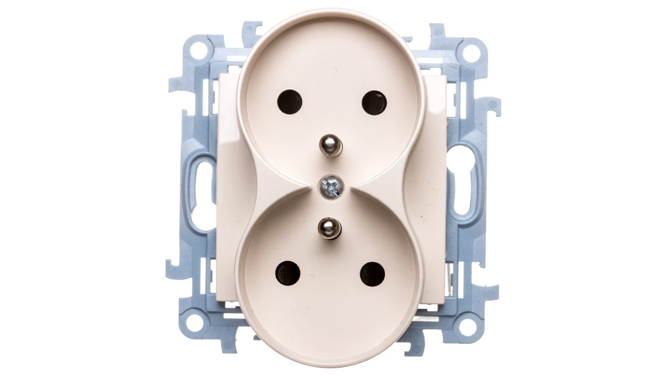 SIMON 10 MODUŁ KREM GNIAZDO 2X Z/U Z PRZESŁONAMI ZACISKI ŚRUBOWE 16A 250V
