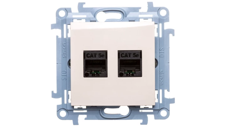 Gniazdo komputerowe podwójne RJ45 kategoria 5e (moduł, beż Simon10 o numerze katalogowym C52.01/41 w kategorii Gniazda teleinformacyjne, multimedialne, Łączniki i gniazda instalacyjne. Produkt wyprodukowany przez markę KONTAKT-SIMON, seria SIMON 10.