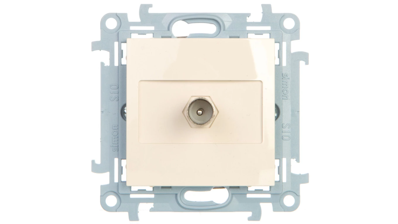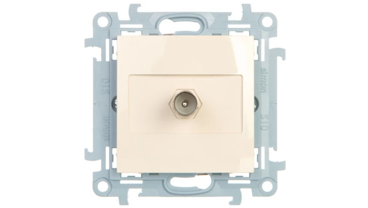 Gniazdo antenowe pojedyncze końcowe (moduł). Do instalacji indywidualnych, beż Simon10 o numerze katalogowym CAK1.01/41 w kategorii Gniazda teleinformacyjne, multimedialne, Łączniki i gniazda instalacyjne. Produkt wyprodukowany przez markę KONTAKT-SIMON, seria SIMON 10.