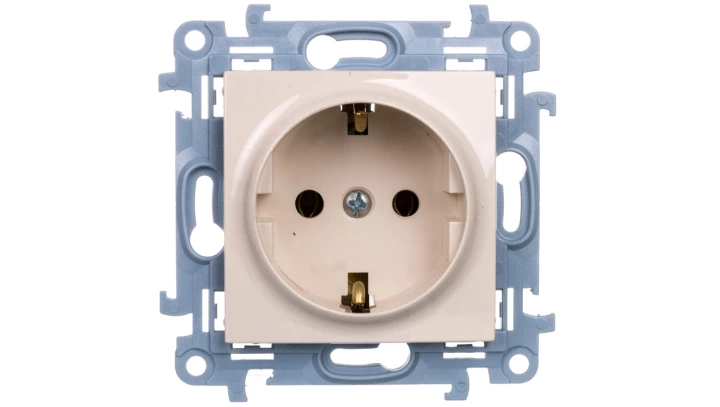 Gniazdo wtyczkowe Schuko pojedyncze (moduł) 16 A, 250 V~, zaciski śrubowe, beż Simon10 o numerze katalogowym CGSZ1.01/41 w kategorii Gniazda podtynkowe, Gniazda instalacyjne. Produkt wyprodukowany przez markę KONTAKT-SIMON, seria SIMON 10.