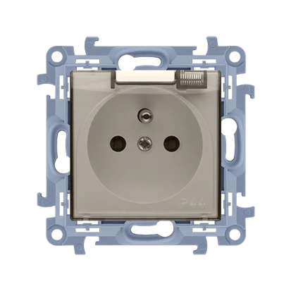SIMON 10 MODUŁ KREMOWY GNIAZDO 1X Z/U IP44 Z KLAPKĄ TRANSP Z PRZESŁONAMI ZACISKI SPRĘŻYNOWE 16A 250V