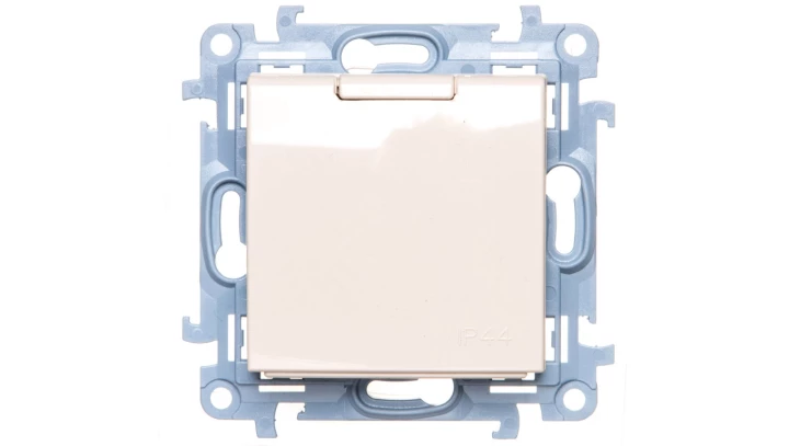 SIMON 10 MODUŁ KREMOWY GNIAZDO 1X Z/U Z KLAPKĄ IP44 Z PRZESŁONAMI ZACISKI ŚRUBOWE 16A 250V
