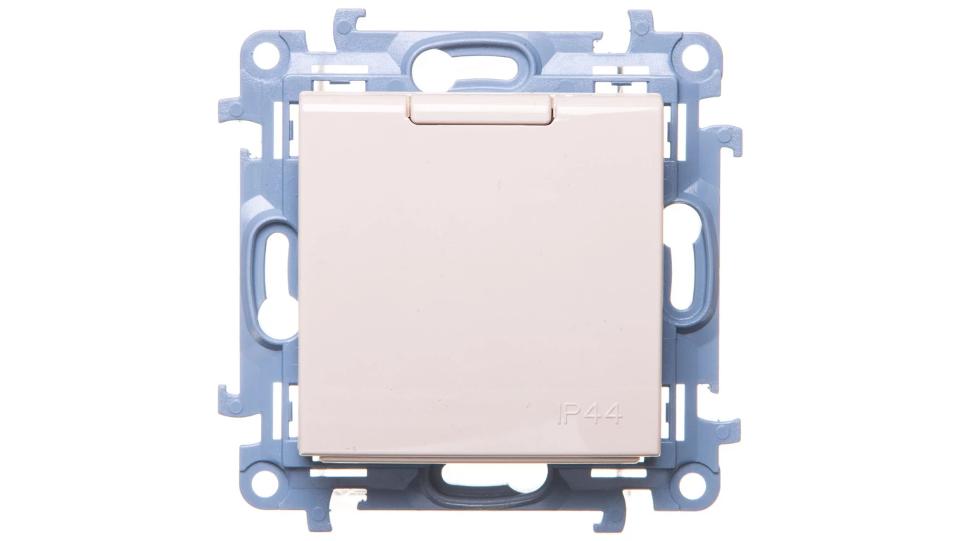 SIMON 10 MODUŁ KREMOWY GNIAZDO 1X Z/U Z KLAPKĄ IP44 ZACISKI ŚRUBOWE 16A 250V