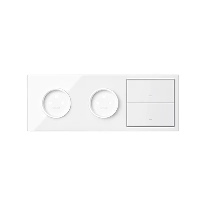 Panel 3-krotny: 2 gniazda + 2 klawisze, biały, SIMON100 o numerze katalogowym 10020322-130 w kategorii Plakietki, Ramki, klawisze, plakietki. Produkt wyprodukowany przez markę KONTAKT-SIMON, seria SIMON 100.