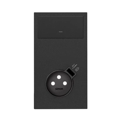 SIMON 100 CZARNY MAT PANEL 2 KROTNY 1X KLAWISZ + 1X GNIAZDO Z ZINTEGROWANĄ ŁADOWARKĄ USB