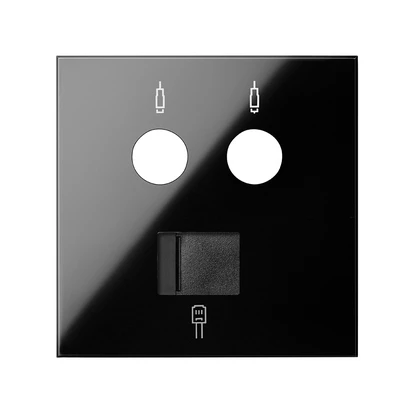 Pokrywa gniazda antenowego R/TV-SAT + komputerowe RJ45 kat.6 , czarny, SIMON100 o numerze katalogowym 10000072-138 w kategorii Plakietki, Ramki, klawisze, plakietki. Produkt wyprodukowany przez markę KONTAKT-SIMON, seria SIMON 100.