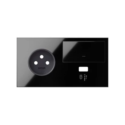 SIMON 100 PANEL 2-KROTNY: 1 GNIAZDO + 1 KLAWISZ + 1 ŁADOWARKA USB (LEWA STRONA); CZARNY