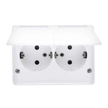 SIMON 54 BIAŁY GNIAZDO NT 2X SCHUKO Z KLAPKĄ IP44 Z PRZESŁONAMI WERSJA SKANDYNAWSKA ŚRUBOWE 16A