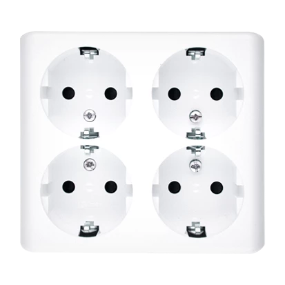 Gniazdo poczwórne Schuko natynkowe z przesłonami torów prądowych wersja skandynawska 16A, 250V~, szybkozłącza, biały, SIMON54 o numerze katalogowym EGSZ4SNZ/11 w kategorii Gniazda podtynkowe, Gniazda instalacyjne. Produkt wyprodukowany przez markę KONTAKT-SIMON, seria SIMON 54.