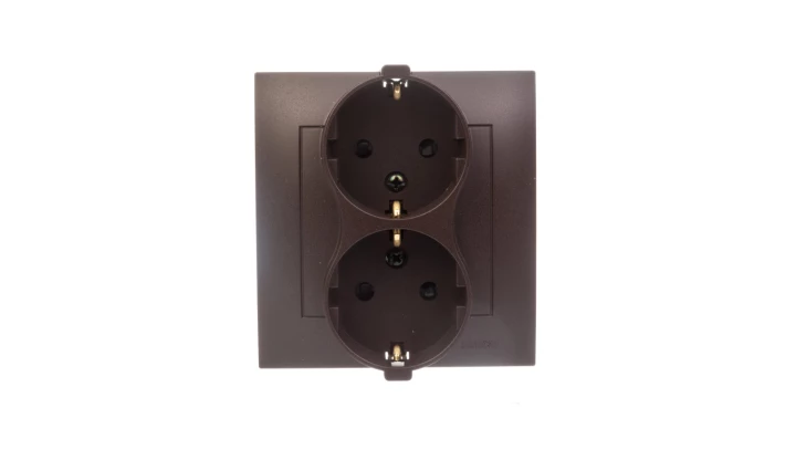 Gniazdo Schuko z przesłonami podwójne 16A, 250V AC, zaciski śrubowe, brąz mat (met.) o numerze katalogowym DGSZ2Z/46 w kategorii Gniazda podtynkowe, Gniazda instalacyjne. Produkt wyprodukowany przez markę KONTAKT-SIMON, seria SIMON 54.