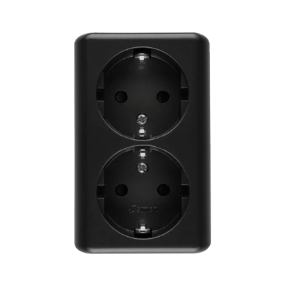 Gniazdo podwójne Schuko natynkowe z przesłonami torów prądowych wersja skandynawska 16A, 250V~, szybkozłącza, czarny mat Simon54 o numerze katalogowym EGSZ2SNZ/49 w kategorii Gniazda podtynkowe, Gniazda instalacyjne. Produkt wyprodukowany przez markę KONTAKT-SIMON, seria SIMON 54.