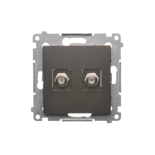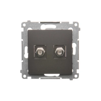 Gniazdo antenowe typu "F" podwójne (moduł). Do instalacji indywidualnych, brąz mat, SIMON54 o numerze katalogowym DASF2.01/46 w kategorii Gniazda teleinformacyjne, multimedialne, Łączniki i gniazda instalacyjne. Produkt wyprodukowany przez markę KONTAKT-SIMON, seria SIMON 54.