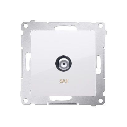 Gniazdo SAT pojedyncze, biały Simon54 o numerze katalogowym DASF1.01/11 w kategorii Gniazda teleinformacyjne, multimedialne, Łączniki i gniazda instalacyjne. Produkt wyprodukowany przez markę KONTAKT-SIMON, seria SIMON 54.