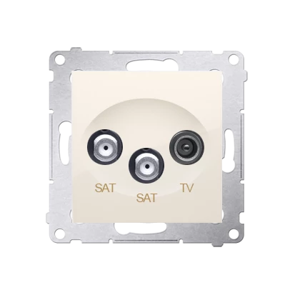 Gniazdo satelitarne podwójne RTV-SAT-SAT, krem Simon54 o numerze katalogowym DASK2.01/41 w kategorii Gniazda teleinformacyjne, multimedialne, Łączniki i gniazda instalacyjne. Produkt wyprodukowany przez markę KONTAKT-SIMON, seria SIMON 54.