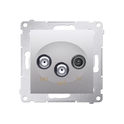 Gniazdo satelitarne podwójne RTV-SAT-SAT, srebrny mat Simon54 o numerze katalogowym DASK2.01/43 w kategorii Gniazda teleinformacyjne, multimedialne, Łączniki i gniazda instalacyjne. Produkt wyprodukowany przez markę KONTAKT-SIMON, seria SIMON 54.