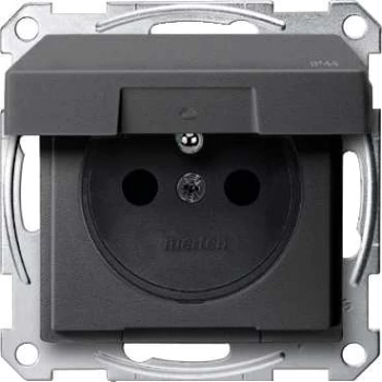 Merten System M Gniazdo pojedyncze z/u 16A IP44 z przesłonami i klapka antracyt MTN2514-0414