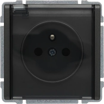 Simon 54 Gniazdo bryzgoszczelne z/u IP44 z klapką transparentną antracyt DGZ1BZ.01/48A