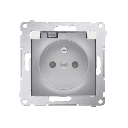 SIMON AKORD SREBRNY GNIAZDO 1X Z/U Z KLAPKĄ DYMNĄ IP44 ZACISKI ŚRUBOWE 16A 250V