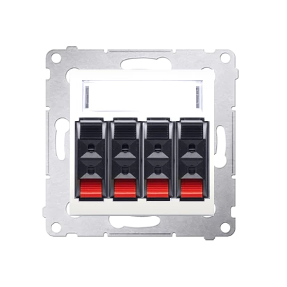 Gniazdo głośnikowe 4-krotne, do podłączenia 4 kolumn głośnikowych, krem Simon54 o numerze katalogowym DGL34.01/41 w kategorii Gniazda głośnikowe, Łączniki i gniazda instalacyjne. Produkt wyprodukowany przez markę KONTAKT-SIMON, seria SIMON 54.