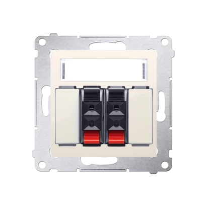 Gniazdo głośnikowe 2-krotne, do podłączenia 2 kolumn głośnikowych, krem Simon54 o numerze katalogowym DGL32.01/41 w kategorii Gniazda głośnikowe, Łączniki i gniazda instalacyjne. Produkt wyprodukowany przez markę KONTAKT-SIMON, seria SIMON 54.