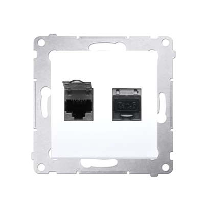 Simon 54 Gniazdo komputerowe podwójne 2xRJ45 kat.6 z przesłoną białe D62.01/11