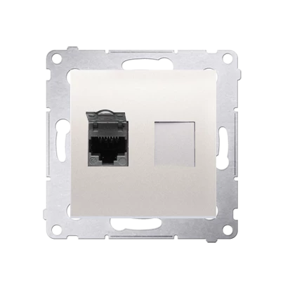 Gniazdo komputerowe pojedyncze RJ45 kategoria 6 ekranowane z przesłoną przeciwkurzową, krem Simon54 o numerze katalogowym D61E.01/41 w kategorii Gniazda teleinformacyjne, multimedialne, Łączniki i gniazda instalacyjne. Produkt wyprodukowany przez markę KONTAKT-SIMON, seria SIMON 54.