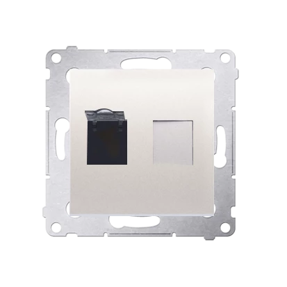 Gniazdo komputerowe pojedyncze RJ45 kategoria 6 z przesłoną przeciwkurzową, krem Simon54 o numerze katalogowym D61.01/41 w kategorii Gniazda teleinformacyjne, multimedialne, Łączniki i gniazda instalacyjne. Produkt wyprodukowany przez markę KONTAKT-SIMON, seria SIMON 54.